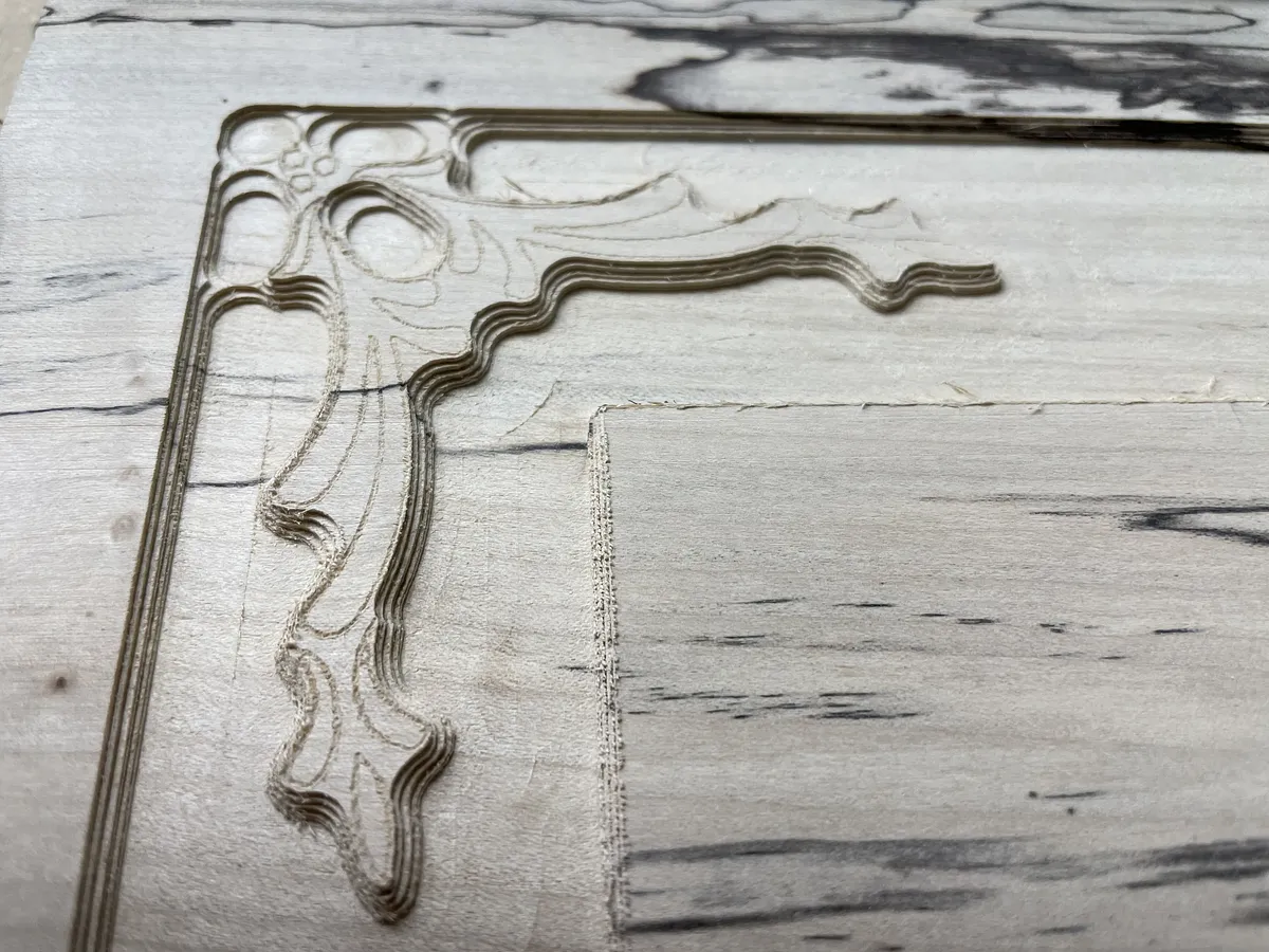 Make sure you have the frame lined up properly when you run this carve. My frame wasn't set perfectly square with the X-Carve so my recess was off a little. That turned out OK as no one will ever see it. It's just a learning experience, right?