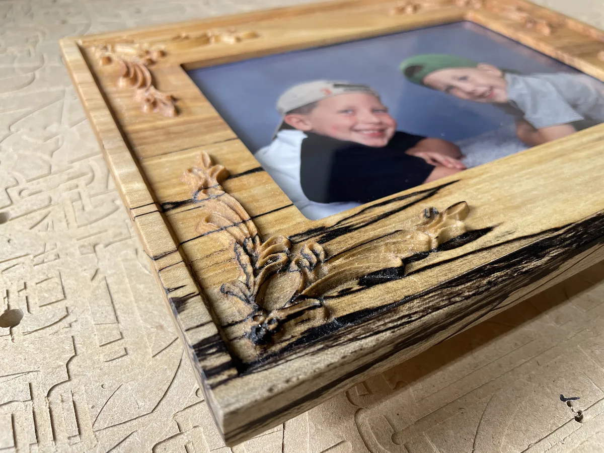 Now that everything is complete you can site back and admire the frame you have carved. I really like how this turned out using the spalted maple. It is a very unique look and adds a lot of character to the design in the corners. I added one of my favorite pictures of our two boys from when they were little.