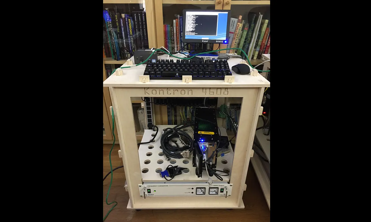 This is a 19" equipment rack. It uses mortise and tenon joinery, no glue required. It can be cut from a single sheet of 5x5' 0.5" baltic birch plywood.
