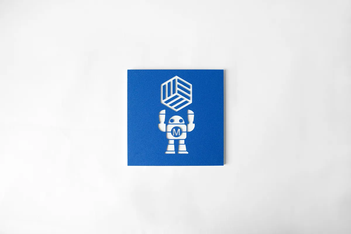 Logo mashup inspiration tile cut on blue HDPE on Carvey