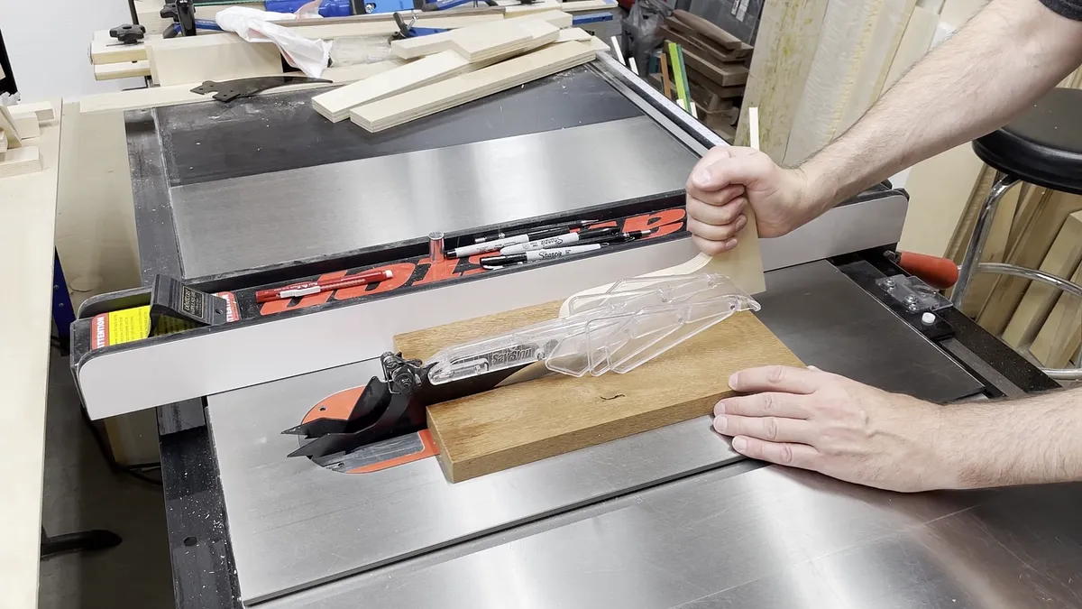 Note that the edges do not have to be perfect on these strips as we will be running these through a planer to get a nice smooth surface. This process will remove the rough edges. The strips of wood that I cut were 2” wide. For perspective, the final wood blanks I had to cut on the X-Carve CNC were 1.25” thick.