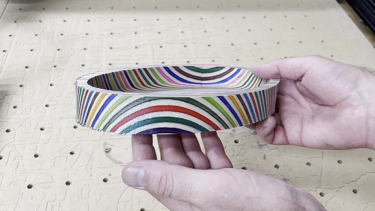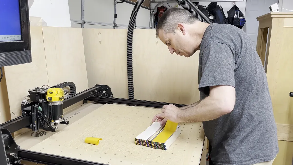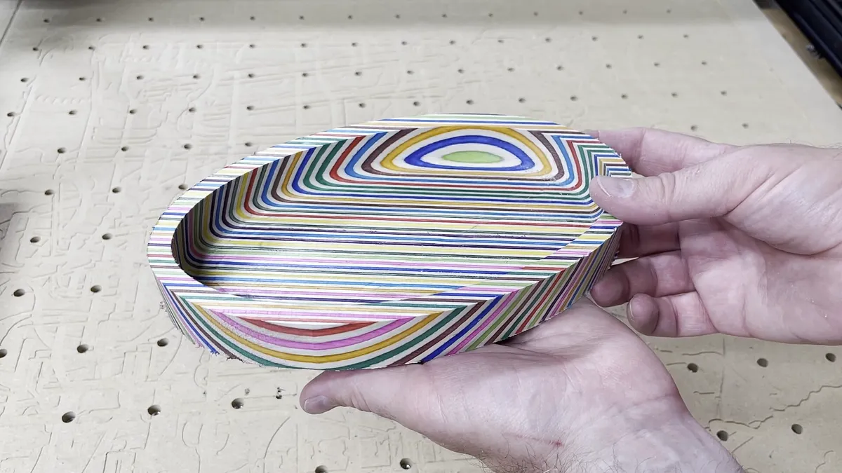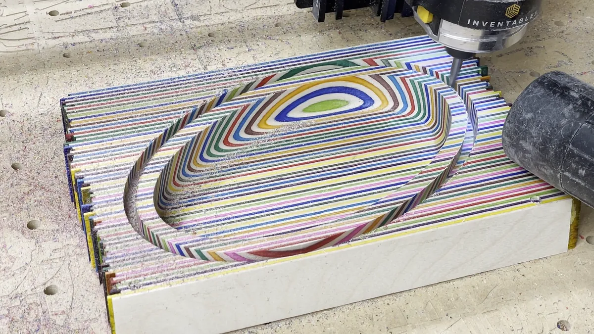 The tools I used on the project were as follows: X-Carve 1000mm CNC Machine by Inventables - "Link":https://www.inventables.com/technologies/x-carve?ref=MakingAtHome 1/4" diameter downcutting bit - "Link":https://amzn.to/3zJALbi 1/8" radius roundover bit with guide bearing 1/2" diameter 1/8" radius bowl and tray bit - "Link":https://amzn.to/3wOe187 Saw Stop table saw - "Link":https://amzn.to/3a8znCE Grizzly 14" Band Saw 12" Planer Random orbit sander Shop vac Parallel clamps Tape Measures (my favorite two): Fastcap PMS-16 Auto Lock ProCarpenter Tape Measure - "Link":https://amzn.to/333fTMN or FastCap PSSR16 16 ft Standard Reverse Measuring Tape - "Link":https://amzn.to/35eQe6k 2" diameter sanding discs - "Link":https://amzn.to/3xik2cC XFasten Double Sided Woodworking Tape - "Link":https://amzn.to/3lfCDUk Minwax 15210 Clear Aerosol Spray Lacquer - "Link":https://amzn.to/3yayIvL