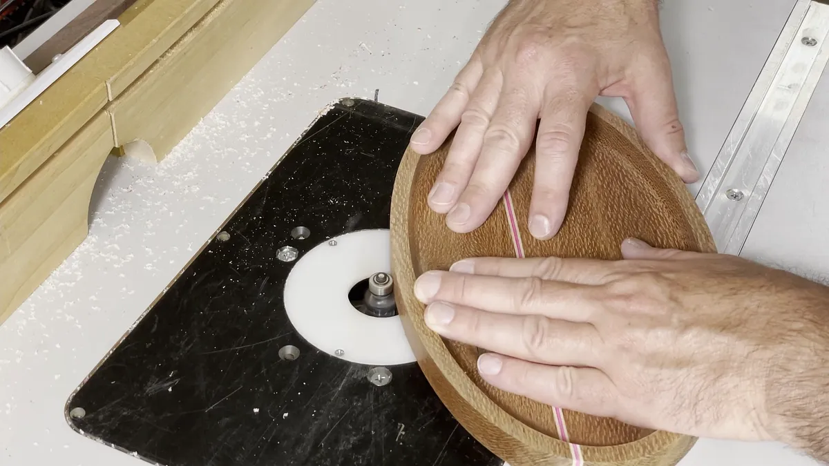 After carving on the CNC I rounded the edges of the trays using a router table with a 1/8" radius roundover bit with a guide bearing. When the trays are deep enough I round over the inside and outside edges of the top and the bottom edge as well.