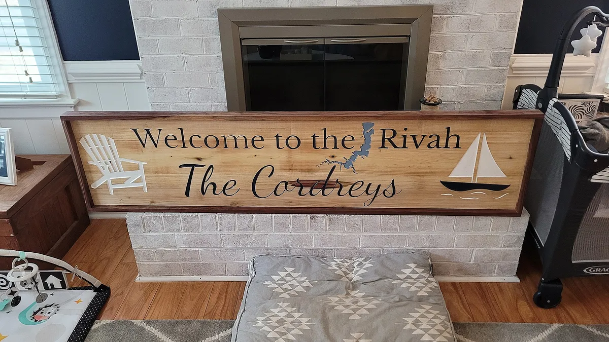 Big Welcome Sign with topographic portion of the Potomac River