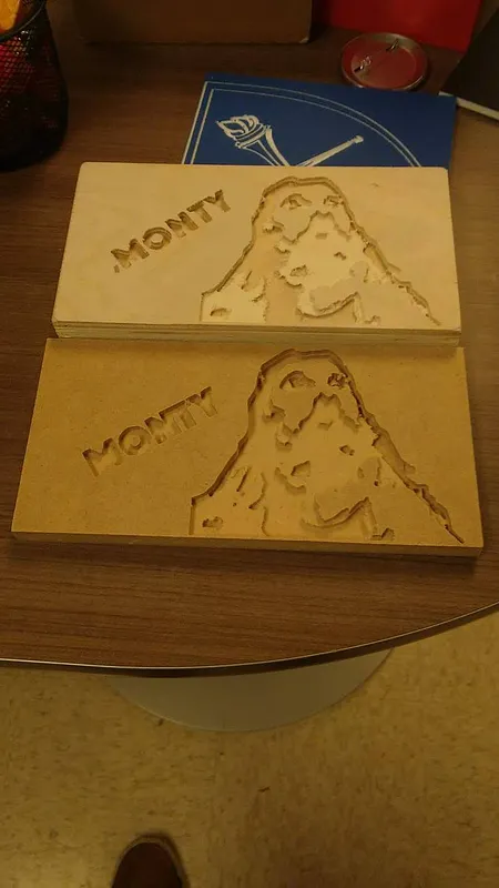 Representation of the picture in SCAD's montgomery hall, commonly known as "Monty Jesus". To 2 depth engrave onto plywood. Modified from the Monty snapchat filter.