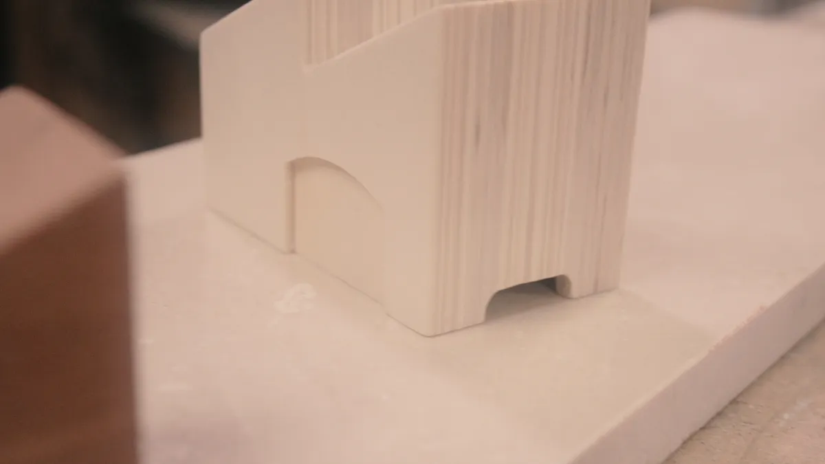 In this step I used a router table with a zero-clearance insert to avoid chipout. This is way overkill. You can get by just using a handfile. I just wanted a cool rounded finish. In my case I added two symmetrical stop blocks. I repeated the cut with slightly bigger settings (pulling apart stop blocks / fence) until the size was enough for the factory to work. Start small and go bigger! that way you won't have to carve it again :)