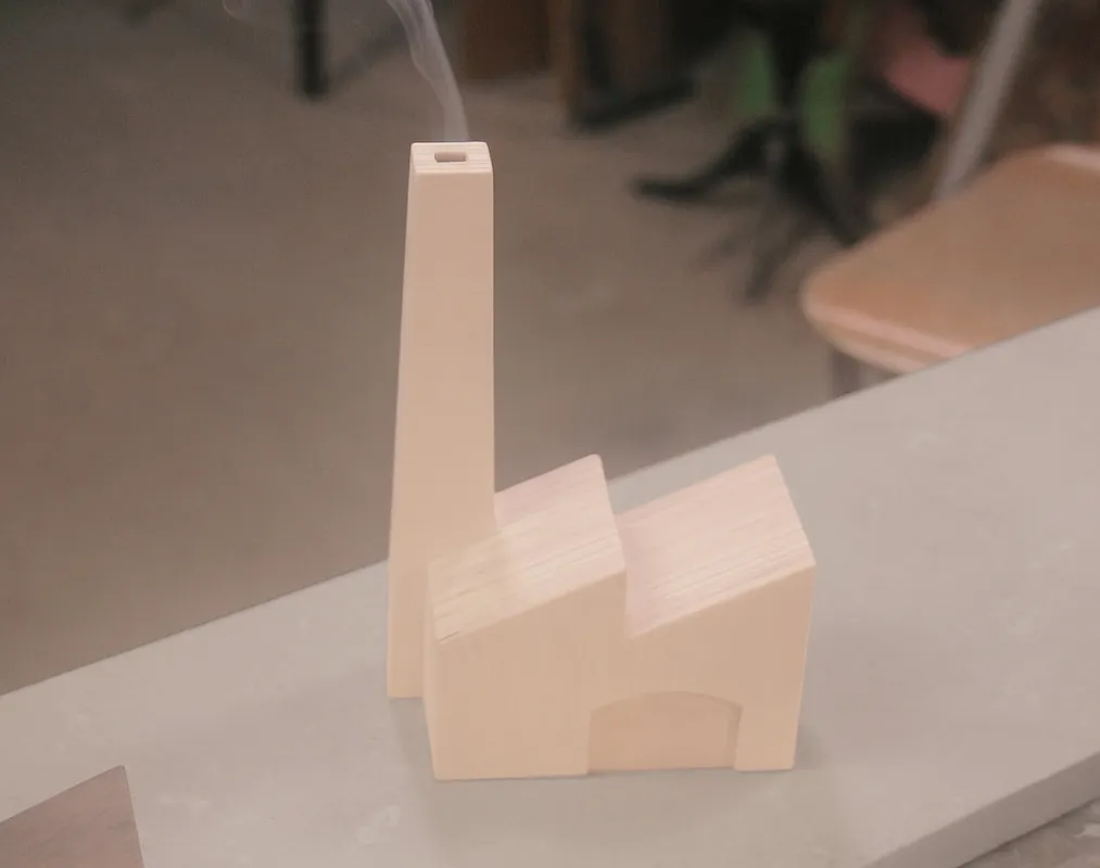 For the factory to work, you will need to open an inlet in one of the sides of the factory, far from the chimney area. I thought it looked cool on the side wall, but it is up to you. You could even include it in the carve, but I didn't as it depends on the type of incense (some of them burn hotter than others) I recommend you adjust it manually until smoke flows properly out the chimney.