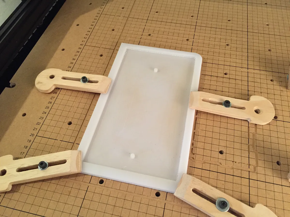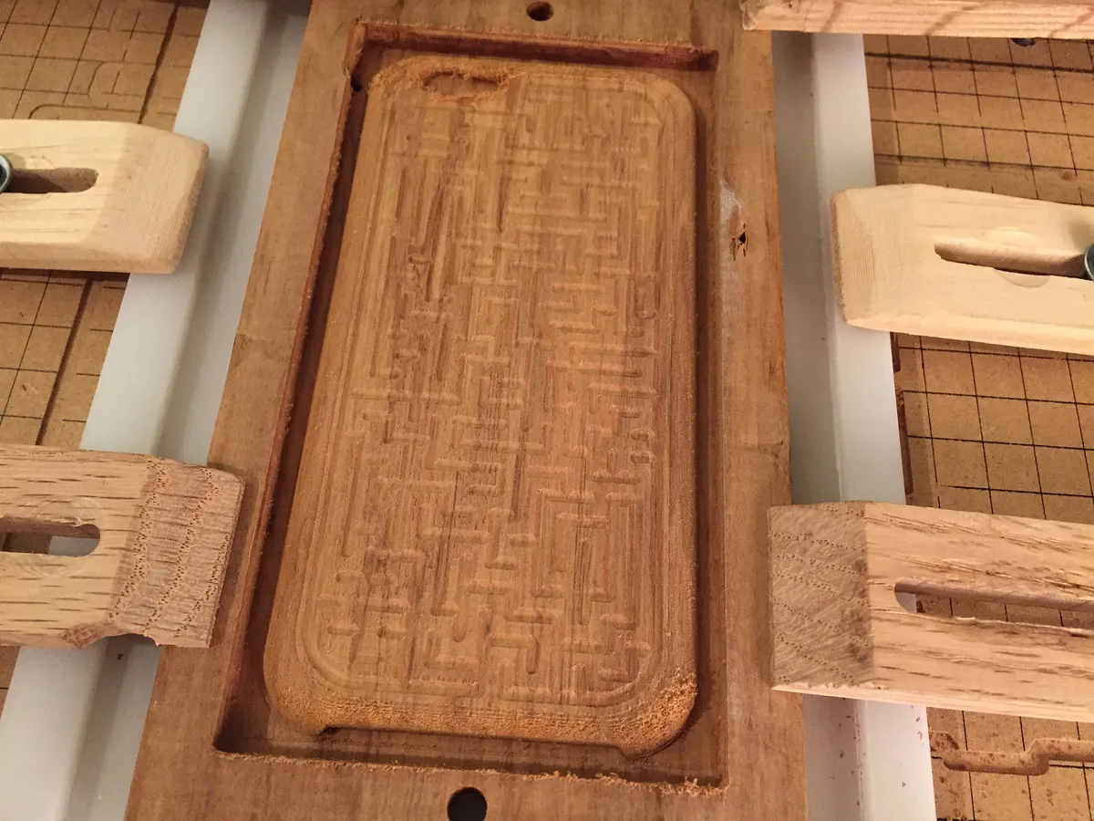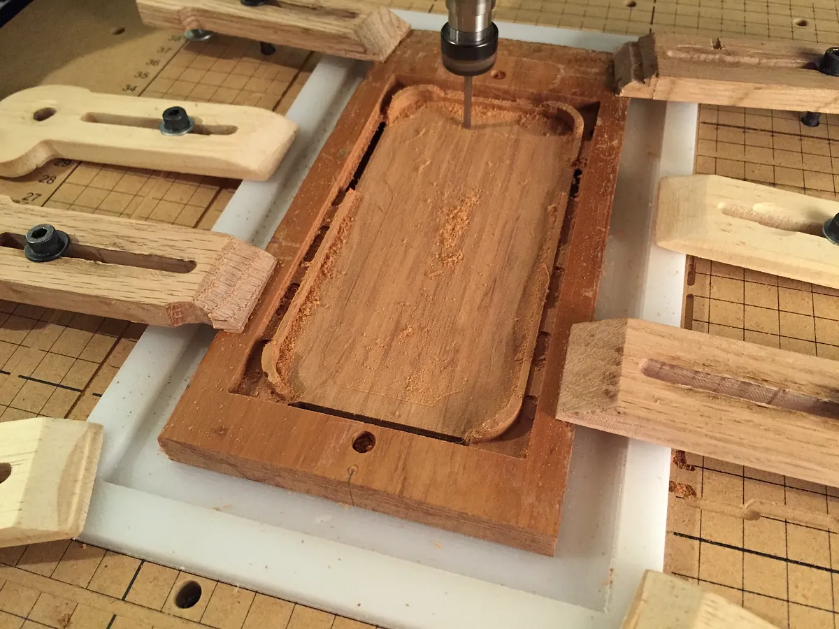 First thing to carve is a fixture. This will hold your material in place while the case is being carved and will help to keep everything aligned.