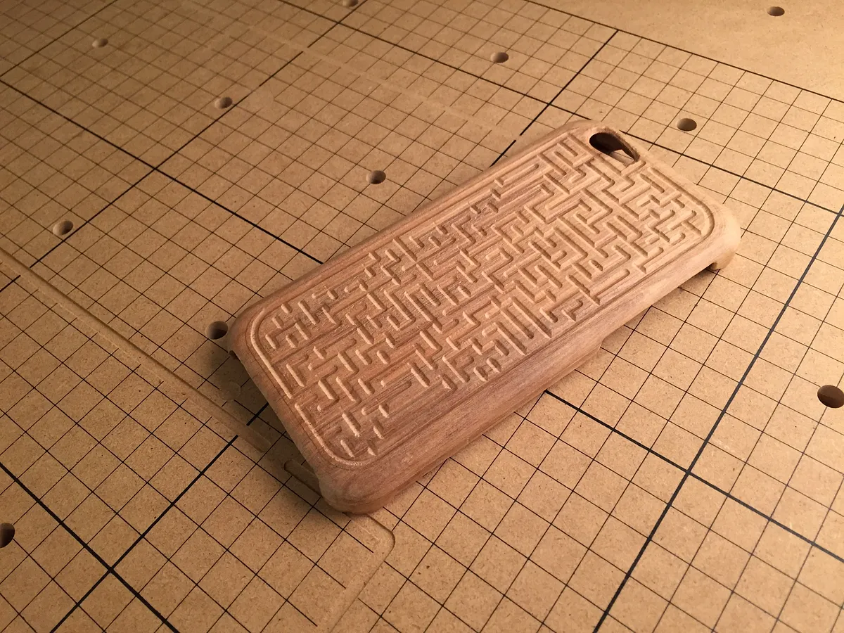 This step is optional, but if you would like something custom on the back of your case then now is the time to carve it. I chose to carve a brail like maze on the back of mine, but it could be anything as long as you keep it pretty shallow. The case thickness is only about 2mm, but you could also do a cut through here, just cut past 3.7843mm and you should have a cut through.