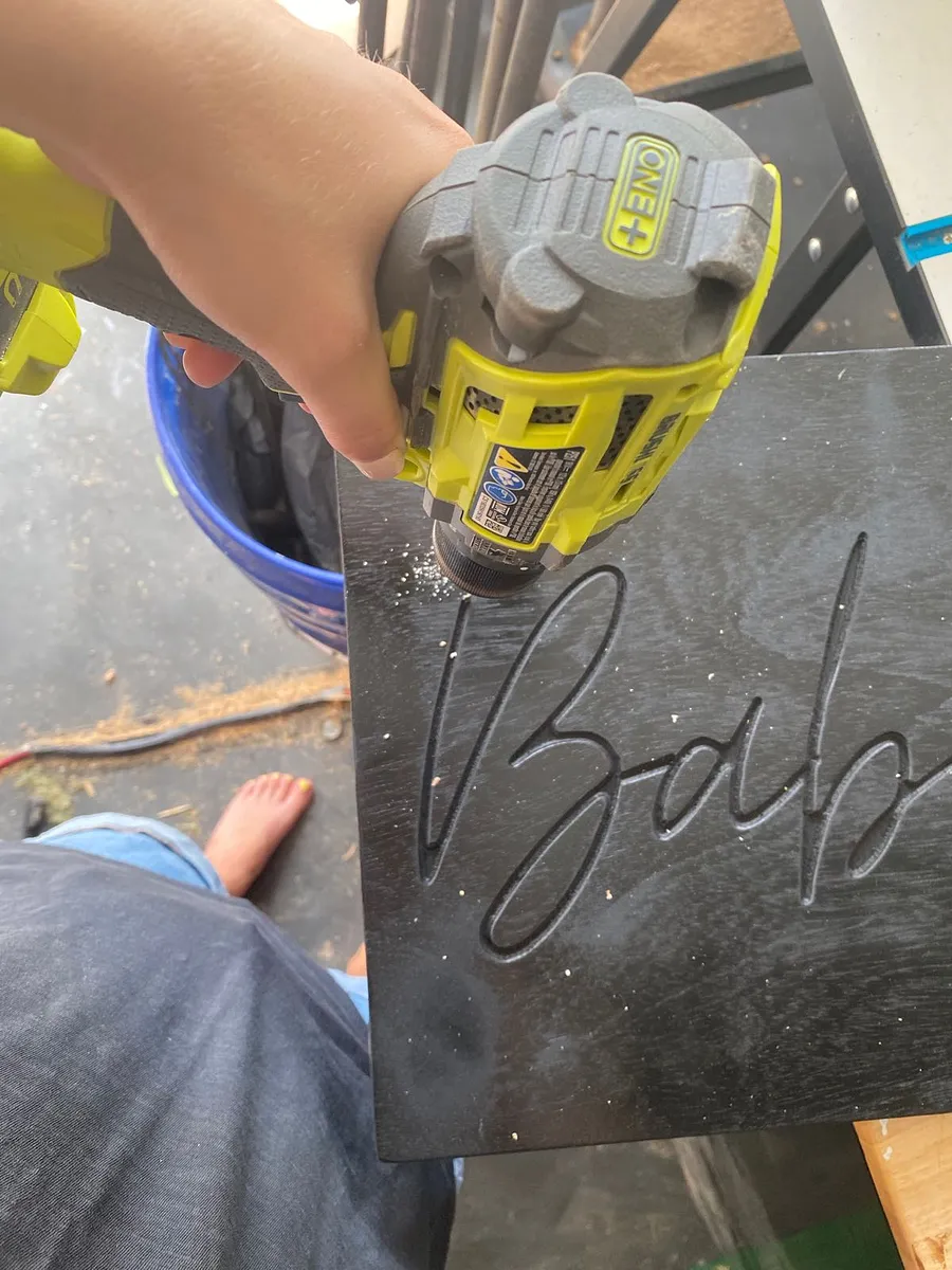 This step is optional, but I painted my sign black so the lighting would stand out a bit more. You could also stain it, or paint the same color as the wall to help it blend in.