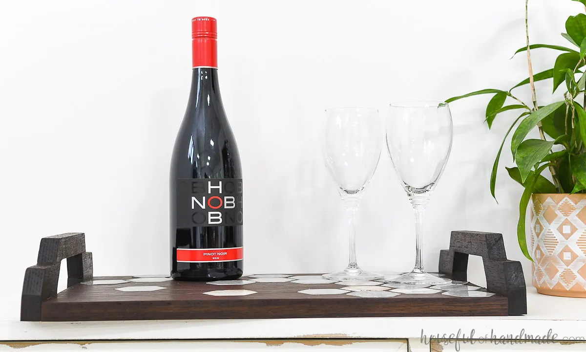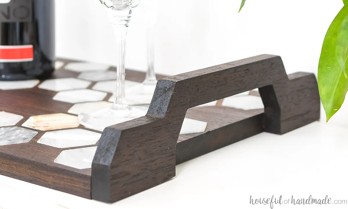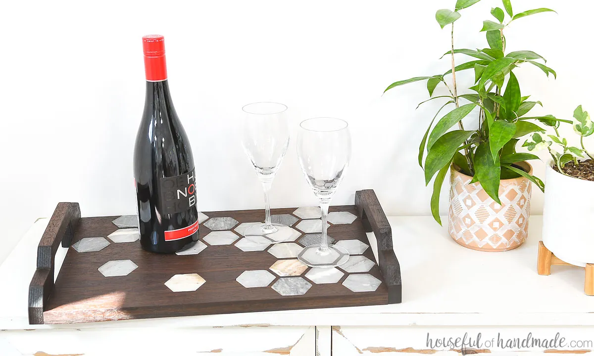 For full detailed instructions on creating the wood chandelier, check out "https://housefulofhandmade.com/marble-tile-inlay-tray-diy/":https://housefulofhandmade.com/marble-tile-inlay-tray-diy/.