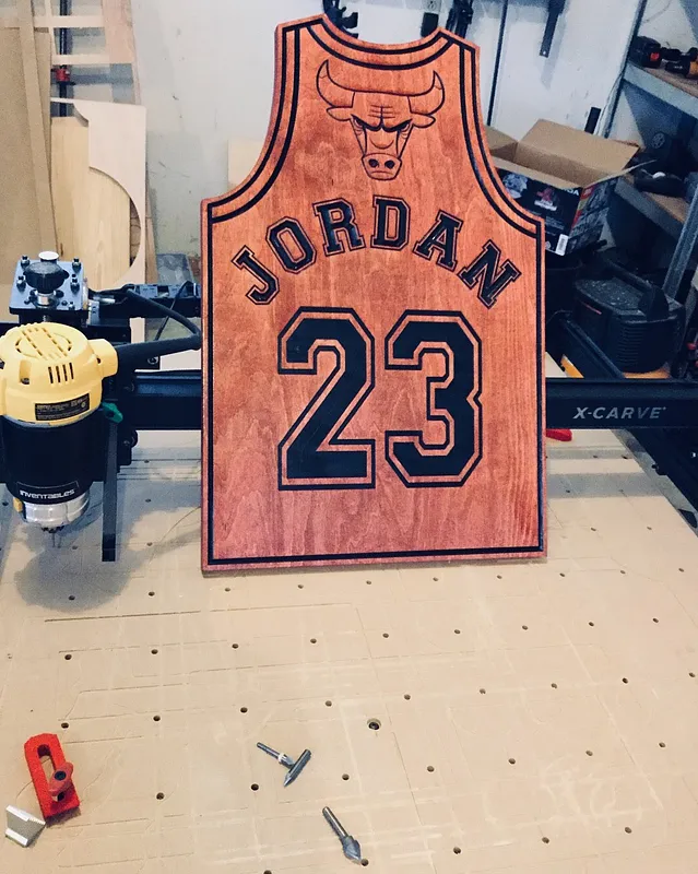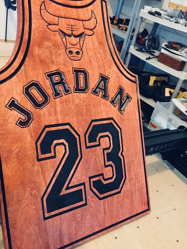 I grew up watching Jordan (the GOAT) play. I never had one of his jerseys, so I made one! It's hanging in my shop.