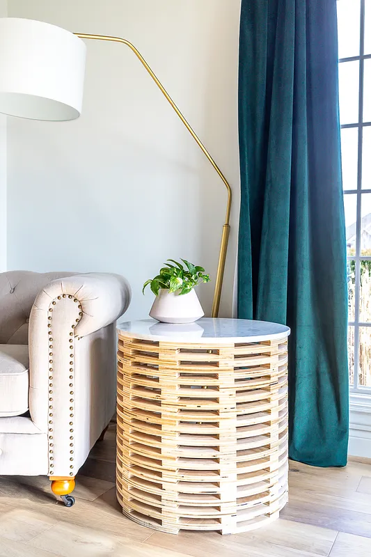 This was a great Idea-- I changed the diameter to 14", used six pieces per layer instead of five, and offest the segments to be a swirl. I used 1" Acrylic for the top and ran LEDs inside to create a ghostly glow. It's a decorative table for an antique hurricane lamp. Thanks for posting this, Jen!
