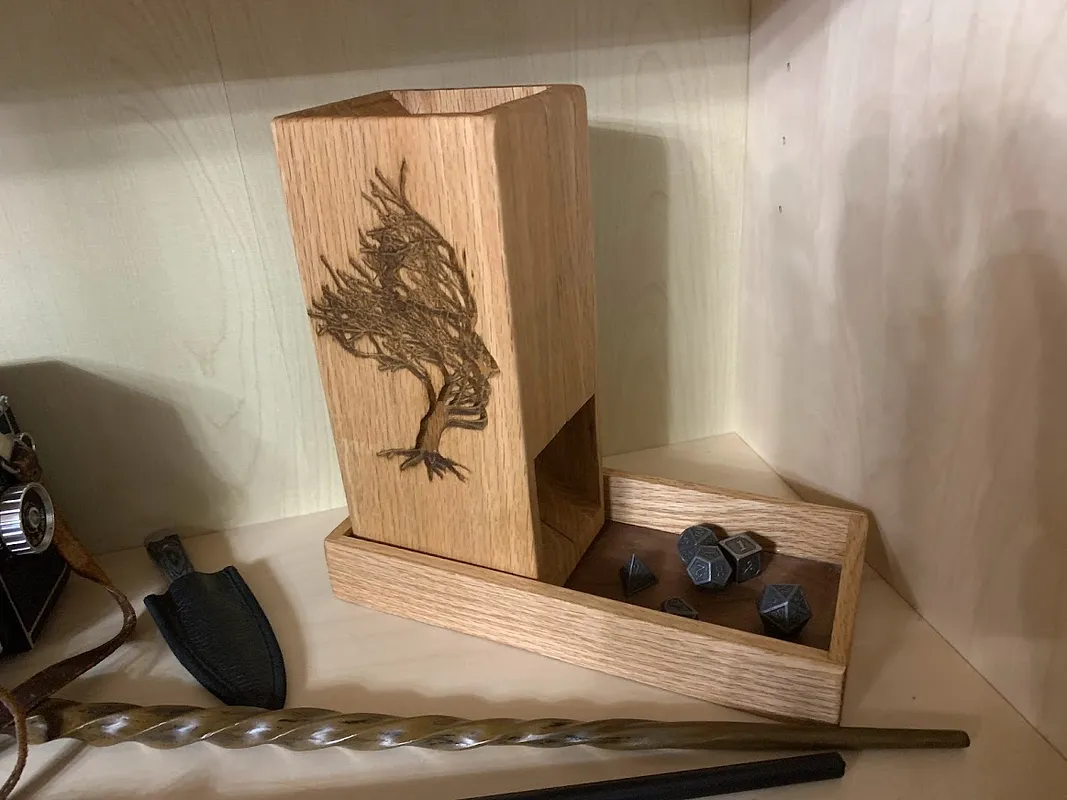 If you want to carve an image on the outside of the tower, I would recommend doing it after you finish and wax the main piece. This will allow you to stain the carving without the stain absorbing in the surface wood.