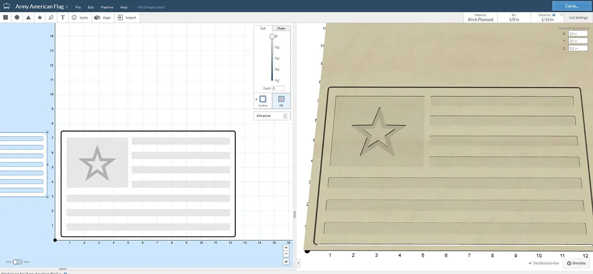 There’s a couple of others as well that have fewer stars so the size of the flag could be kept more compact and it also helps keeps the cut time down. I will upload these variants as soon as I can. I design this flag for my cousin who’s in the Army, he’s an SSG and I’m very proud of him. It was also