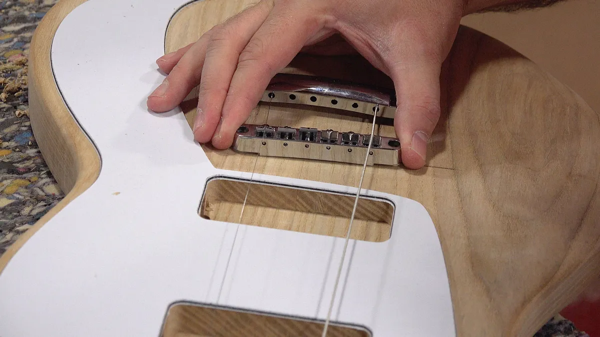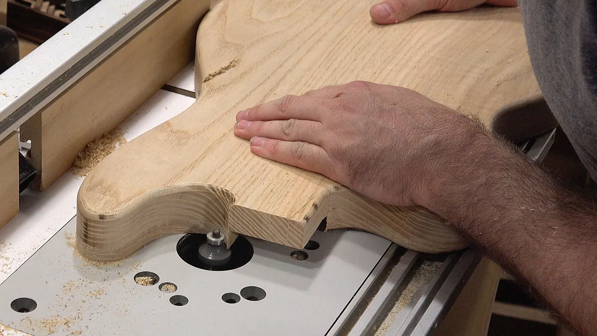 Cut out the neck pocket. You'll want to be sure the neck fits snugly into the body. One of the things that separate a cheap guitar from a well made one is how this fits.