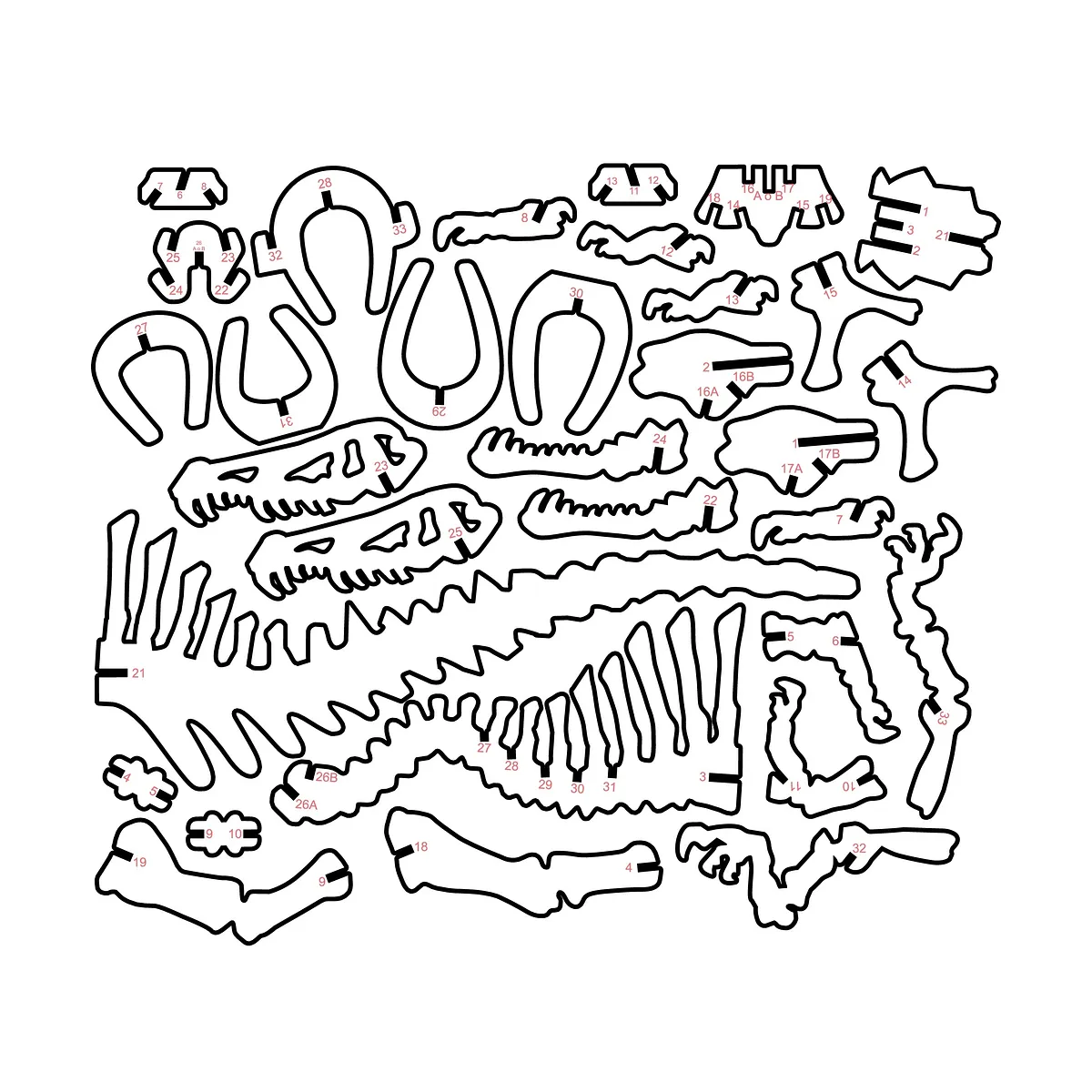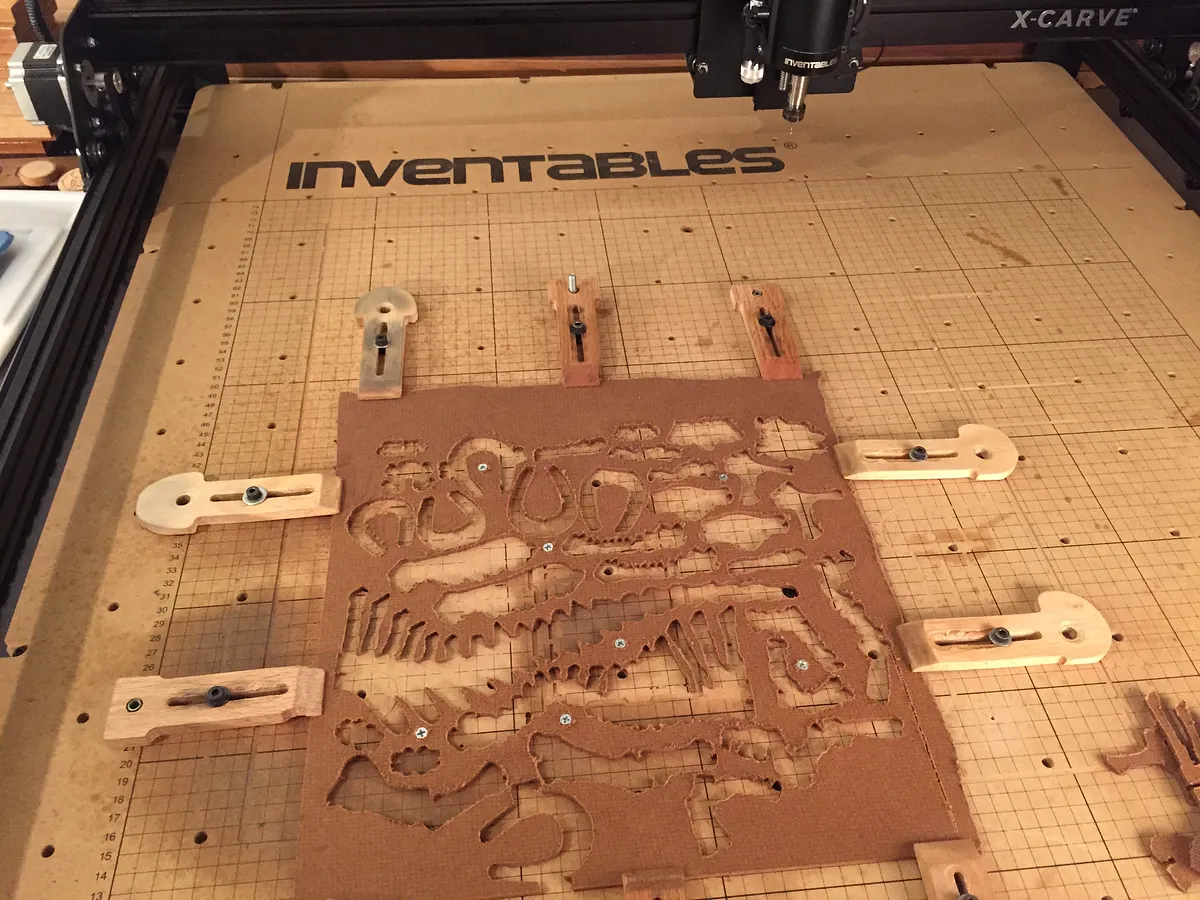 Now that the bones have been carved, you may want to sand and finish your material, being sure that the slots are all clear of tear-out and any left over pieces.