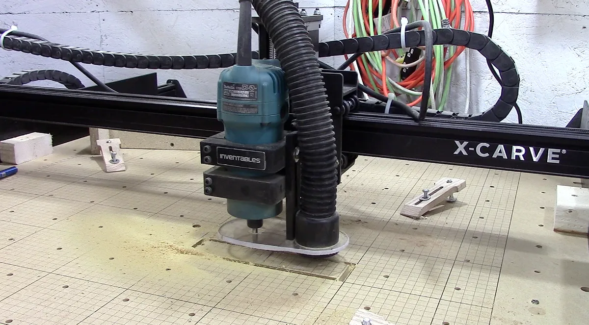 Now it is time to cut a section out of the waste bored. I use the CNC itself for this task as this allows me to align the fixture with the cut line, ensuring that the jig is in line with the machine. The hole I cut out measures 2? x 8?