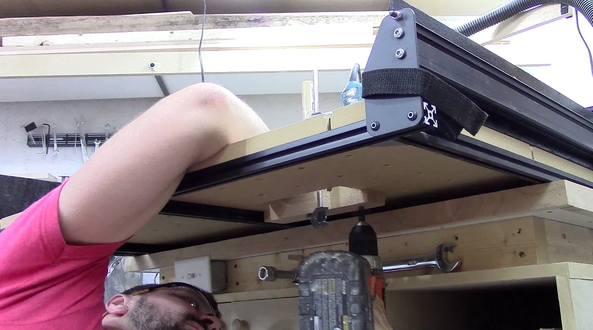 Then I could screw the T- track into each groove. I did this by drilling holes along the bottom of the T-track and countersinking the holes for the screws