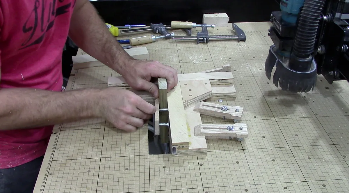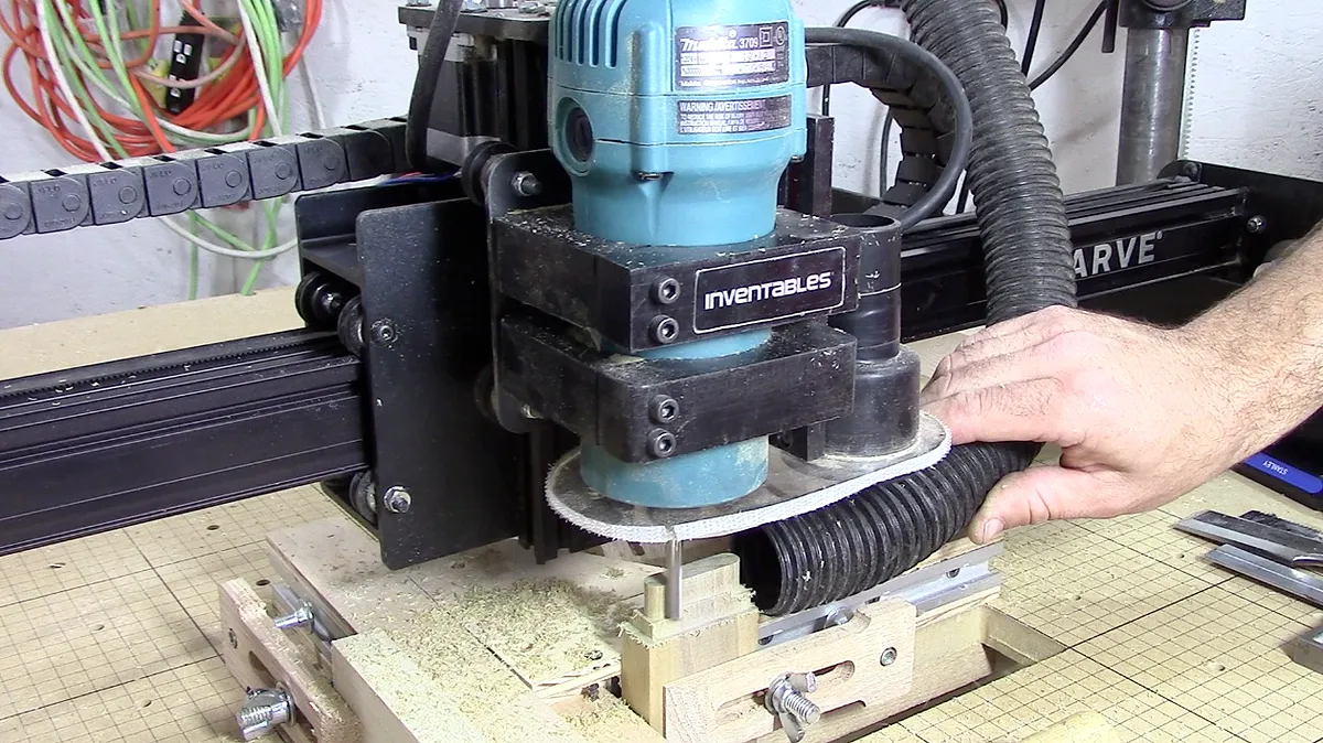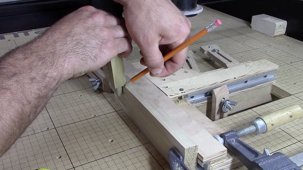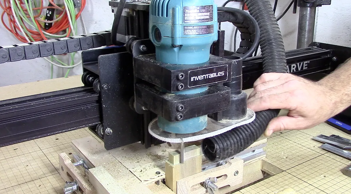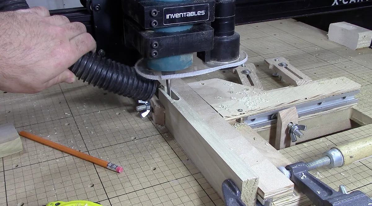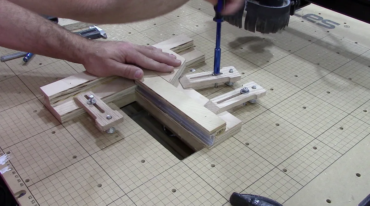 I held the fixture in place by using the hold down clamps and making sure it is in line with the hole I cut with the router.