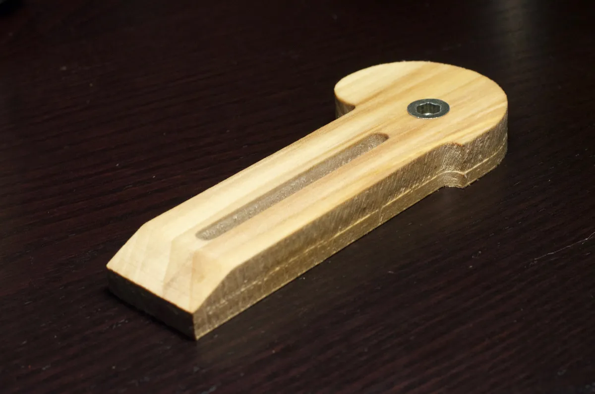 A clamp based on Inventables clamps, with a cam built into the back. Increased the height to 1/2" so I could use the front face as another clamping face.