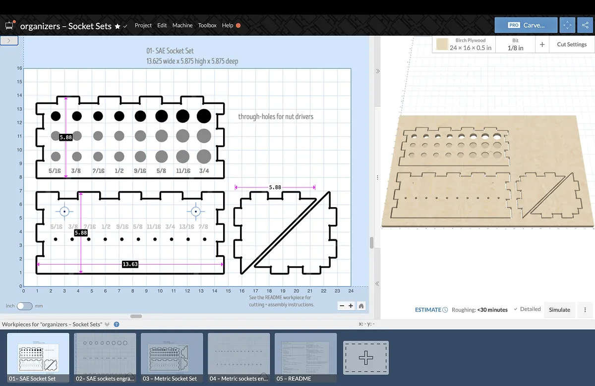 • The SAE and Metric Socket racks are each separate workpieces within this project.