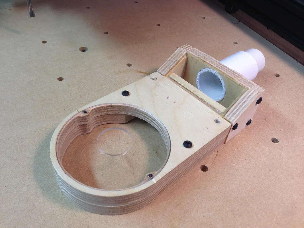Acrylic covers for top, back and bottom Magnets (.125 dia x .0625 tall) x4 2" Corner braces (L-brackets) max .6" width. Custom holes drilled PVC 3/4 to 3/4 junction PVC 3/4 (3") The PVC parts fit my dust hose, you may need to modify accordingly.