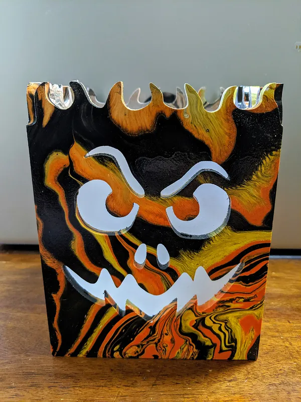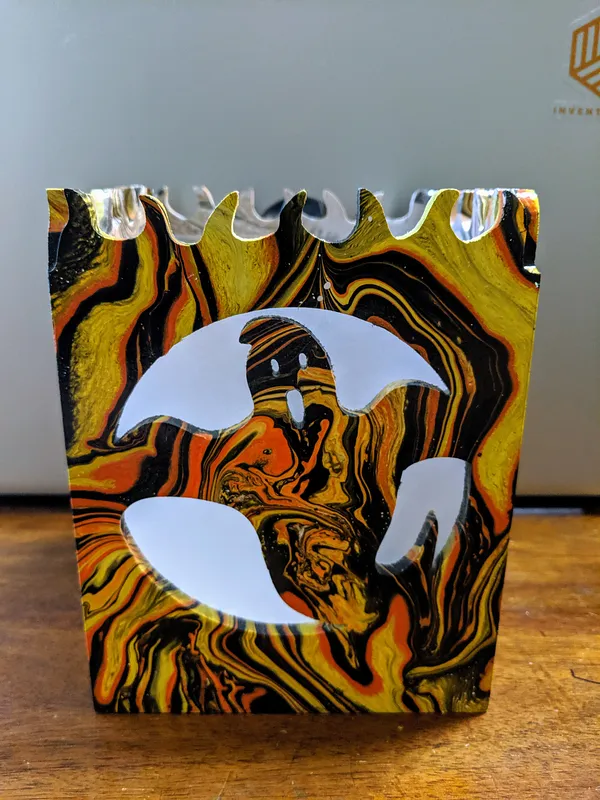 I made mine using mitres on the corners and velum paper instead of acrylic. I used the CNC to also cut a 1/8" deep relief cut for the LED candle. I tried my hand at hydro dipping for the finish.