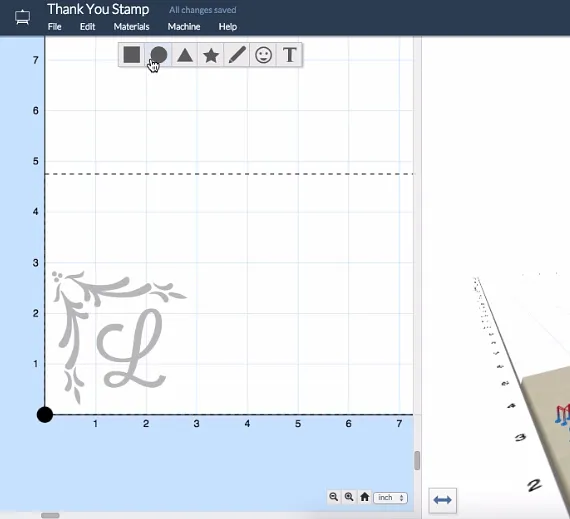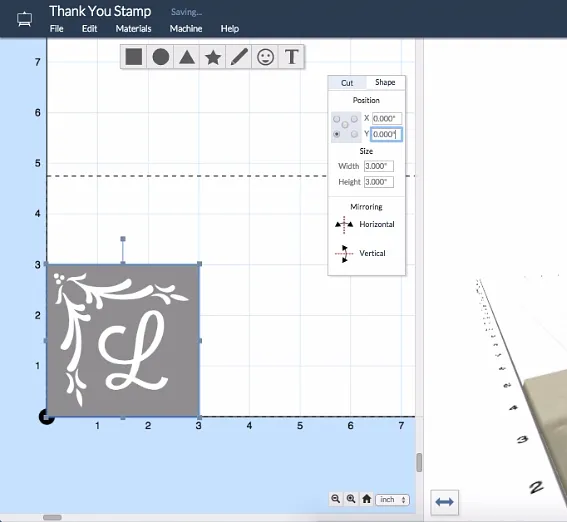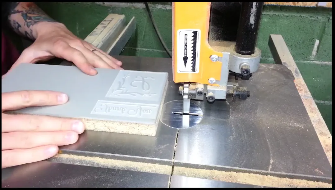 This can be done using the machine but I encourage you to carve out the stamps on a larger piece of linoleum and cut them to final size once carving is completed using a bandsaw, table saw ect...
