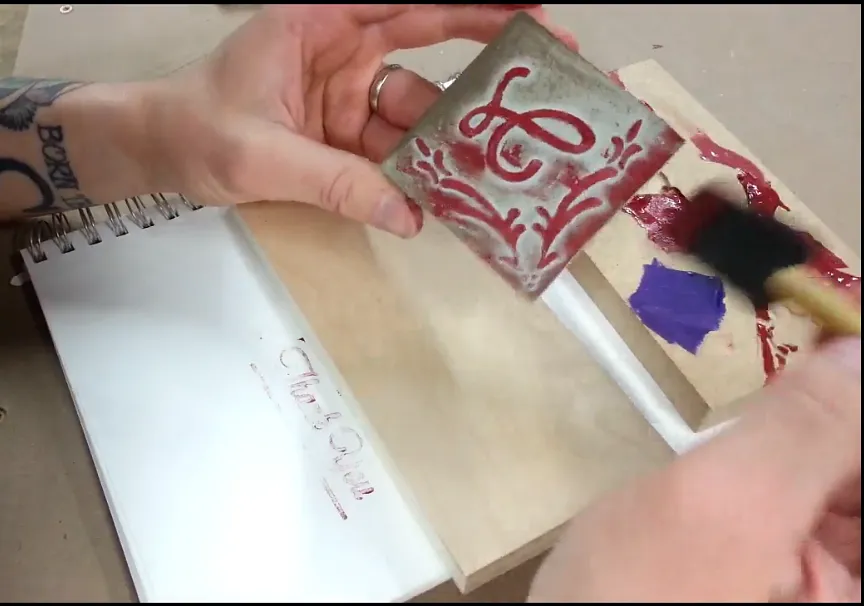 Once the carve is complete you may need to go over the stamp quickly with an awl or a nail to clear out the linoleum chips from tight corners and detailed areas.