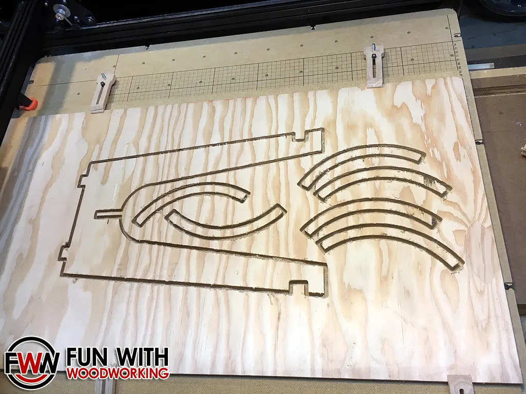 I had some free pieces of plywood so I made Jimmy's stool out of 2 pieces sized 39" x 21" x 5/8". I separated his plan into 2 different Easel files and cut them out with no problems!