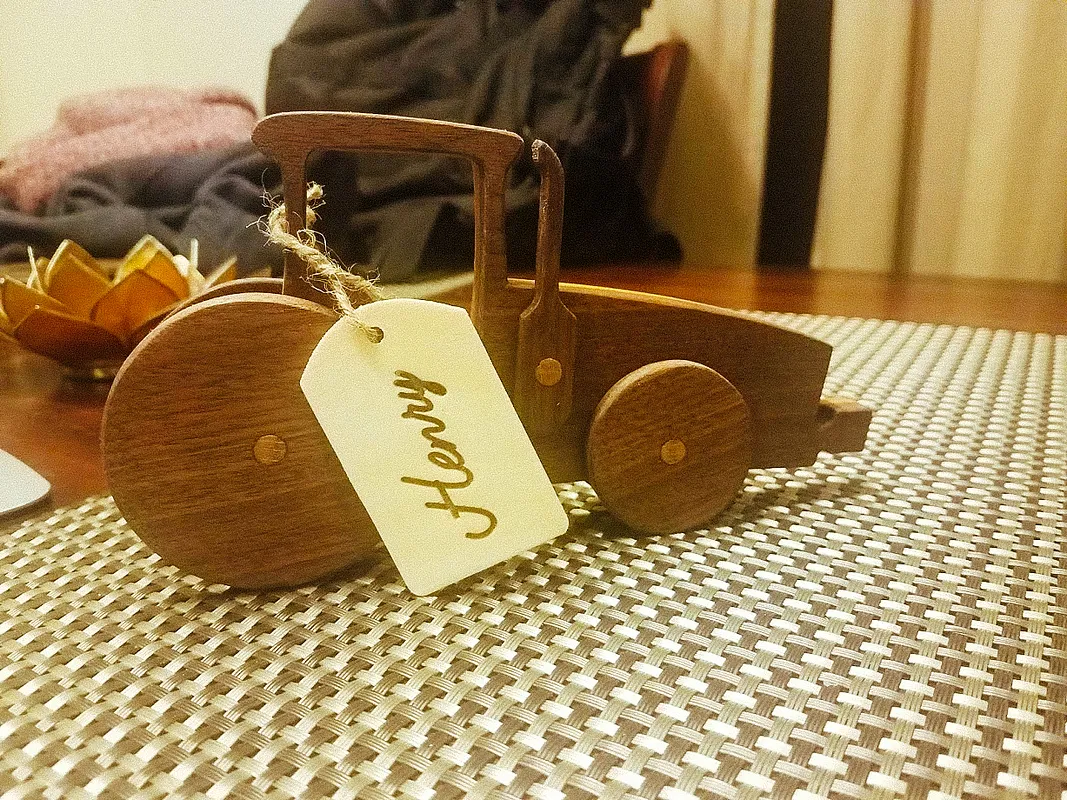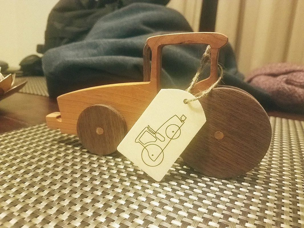 This project is pretty simple, but open-ended since I didn't really use standard-size materials. If you decide you want to make one of these, I'd be curious to see what kind of materials and thicknesses you went with. This body is half cherry, half walnut with oak dowels. You can run off a number of body pieces and ply them together to create a wider tractor, same for the wheels. You could also go with beefier dowels to make the axles more sturdy or add two extra rear wheels like the real tractor.