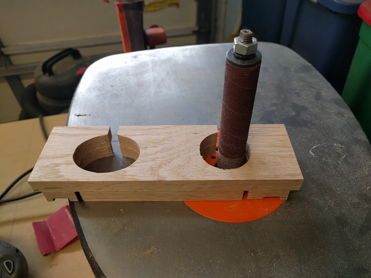 Since my gluing job was not 100% accurate, I went back to the sander to ensure the razor holes were completely even and to sand away any excess dried glue.