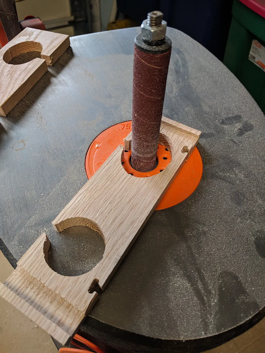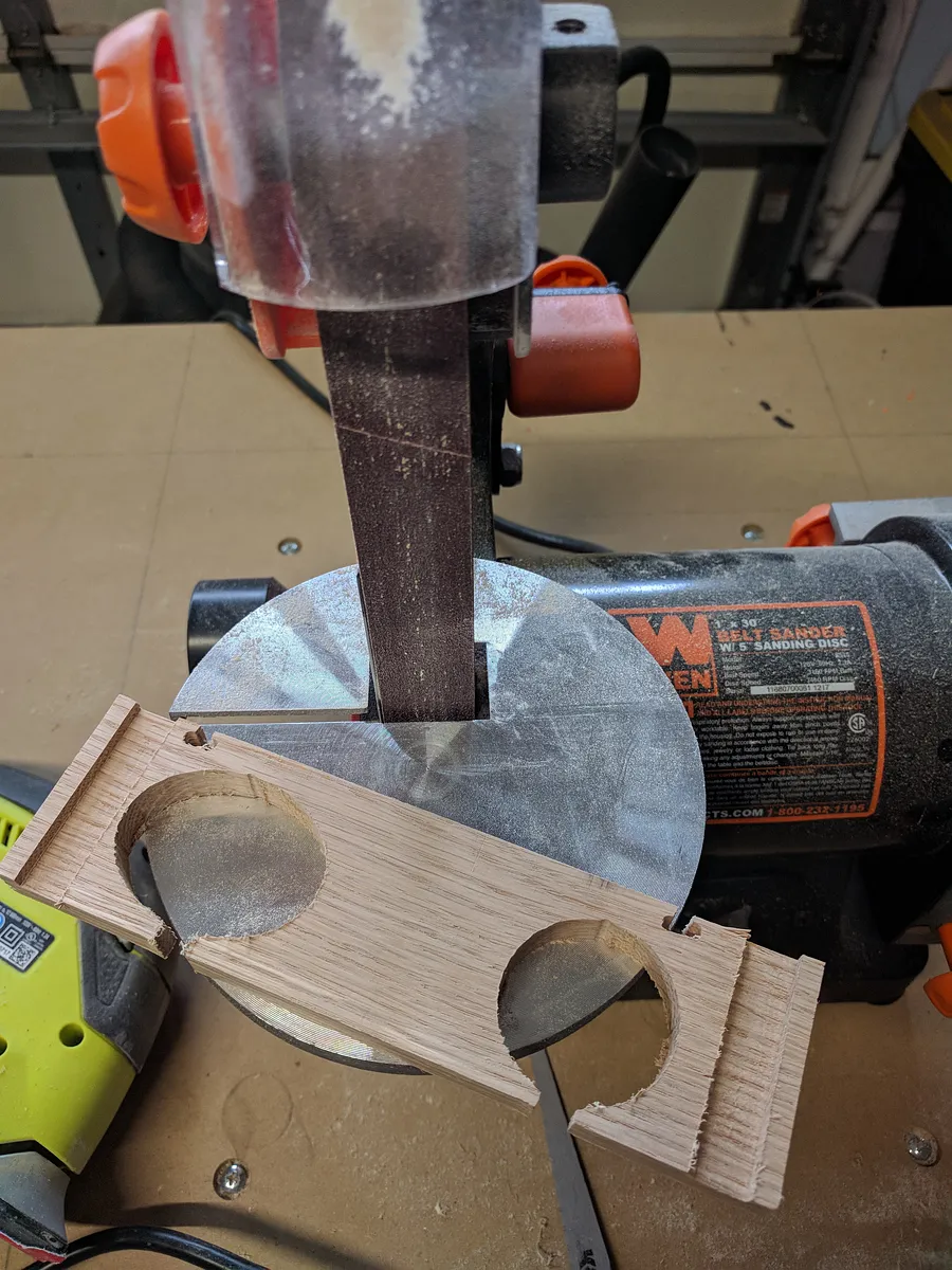 I used a 1" belt sander and a spindle sander to smooth out the pieces, then I followed up with detail sanding with a piece of sandpaper.