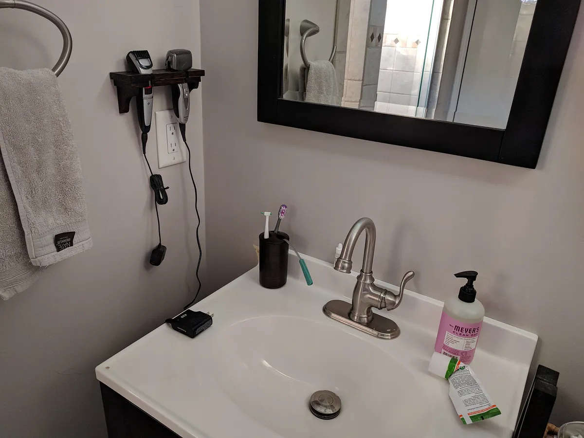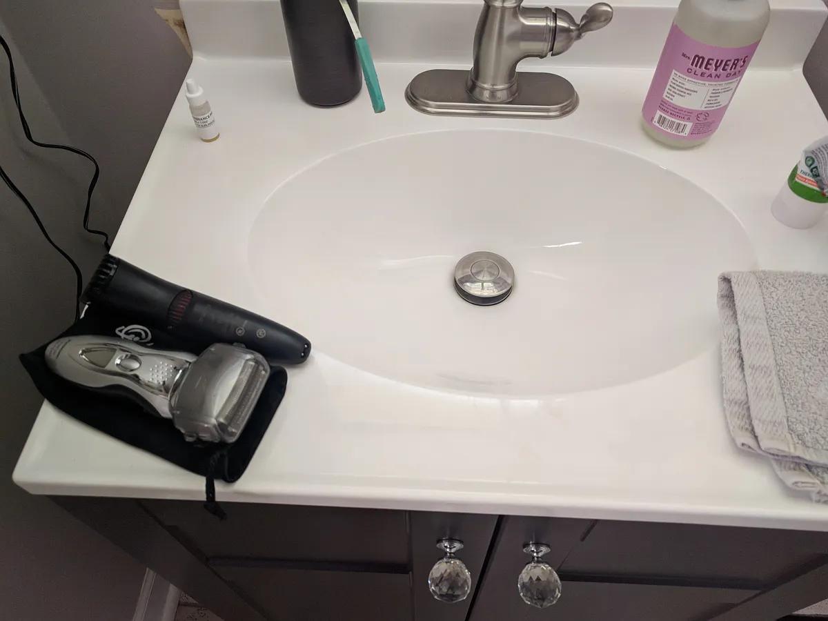 So, here is my sink before. My razor and beard trimmer were balanced on my small sink.