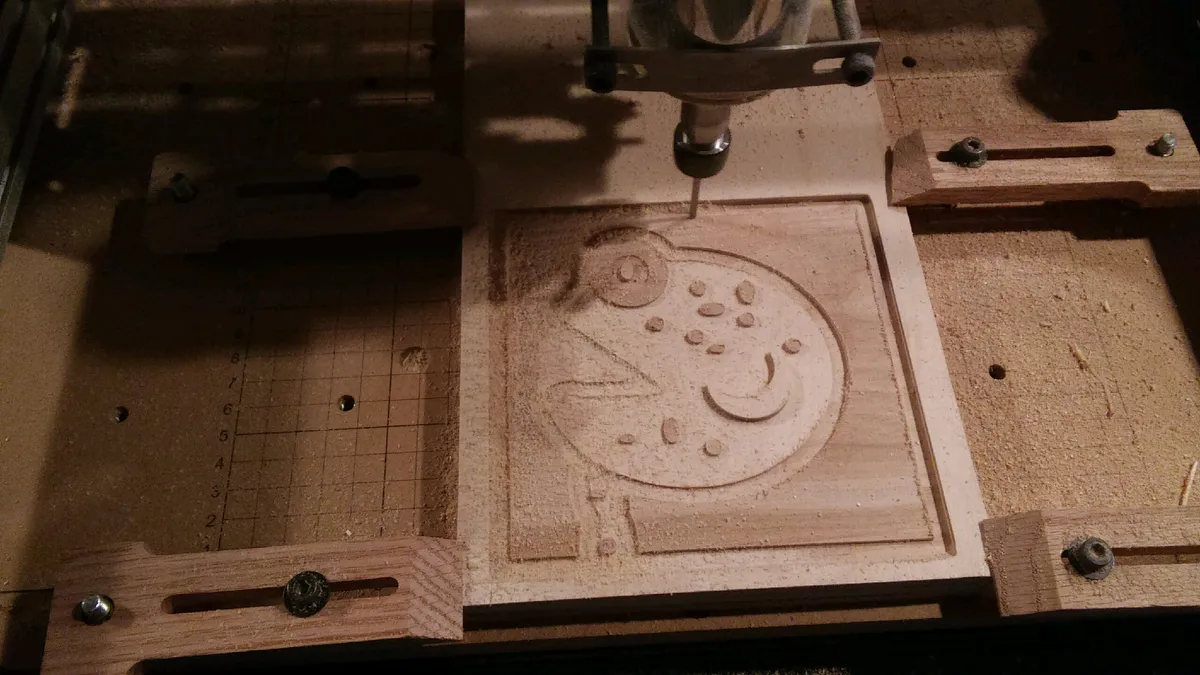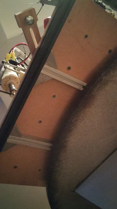 be accurate every plywood is different. The only additional modifications to the 500 mm base was building it upside down on a level granite countertop, 20 mm bolts in the extrusions and the additional supports in the bottom of the inventables waste board using the pre existing holes. Lamp Shade?
