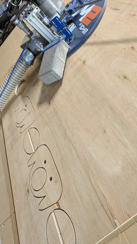 Dust collection hose mounting brackets for 2.5 inch hose. Elephant face is glued and screwed into the top plate and the plate is mounted to the ceiling. This is set up for 3/8" plywood but to adjust for different thickness, adjust the rectangle width on the mounting plate