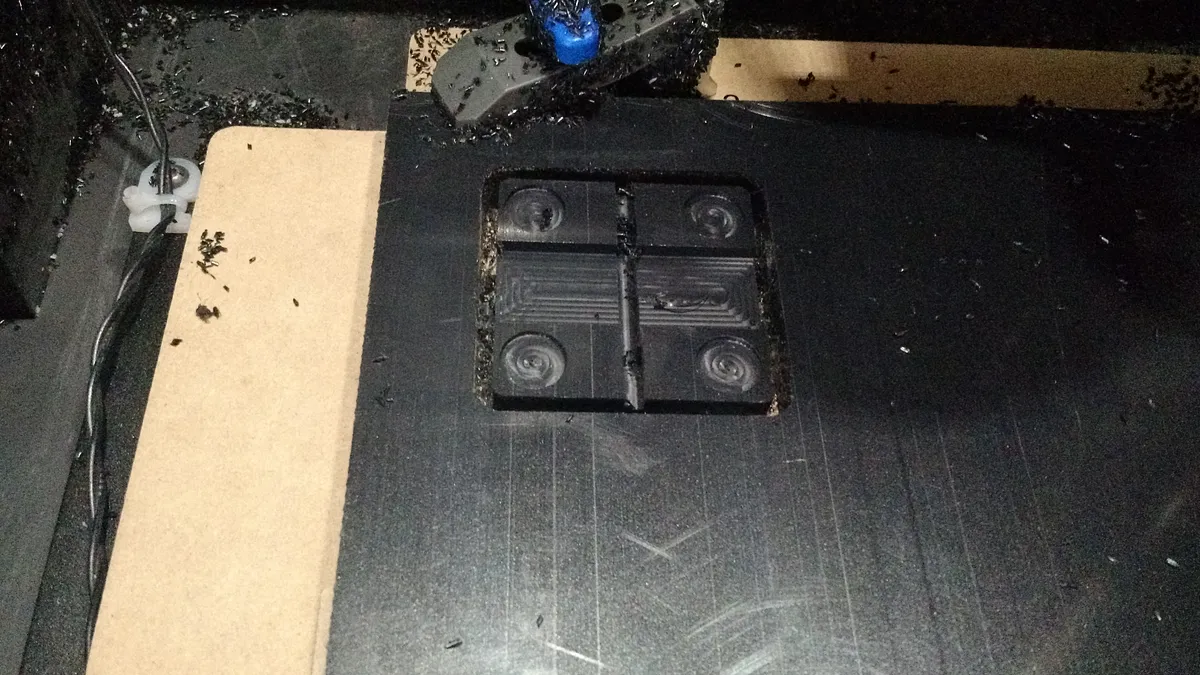 Use a 1/8" square or fishtail endmill to cut the cable path and other details into the bottom of the puck.