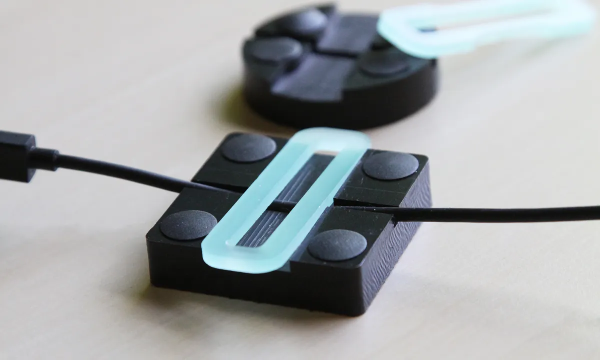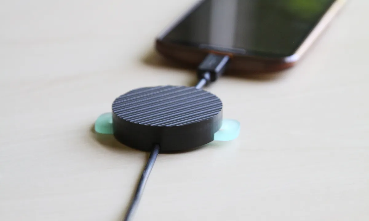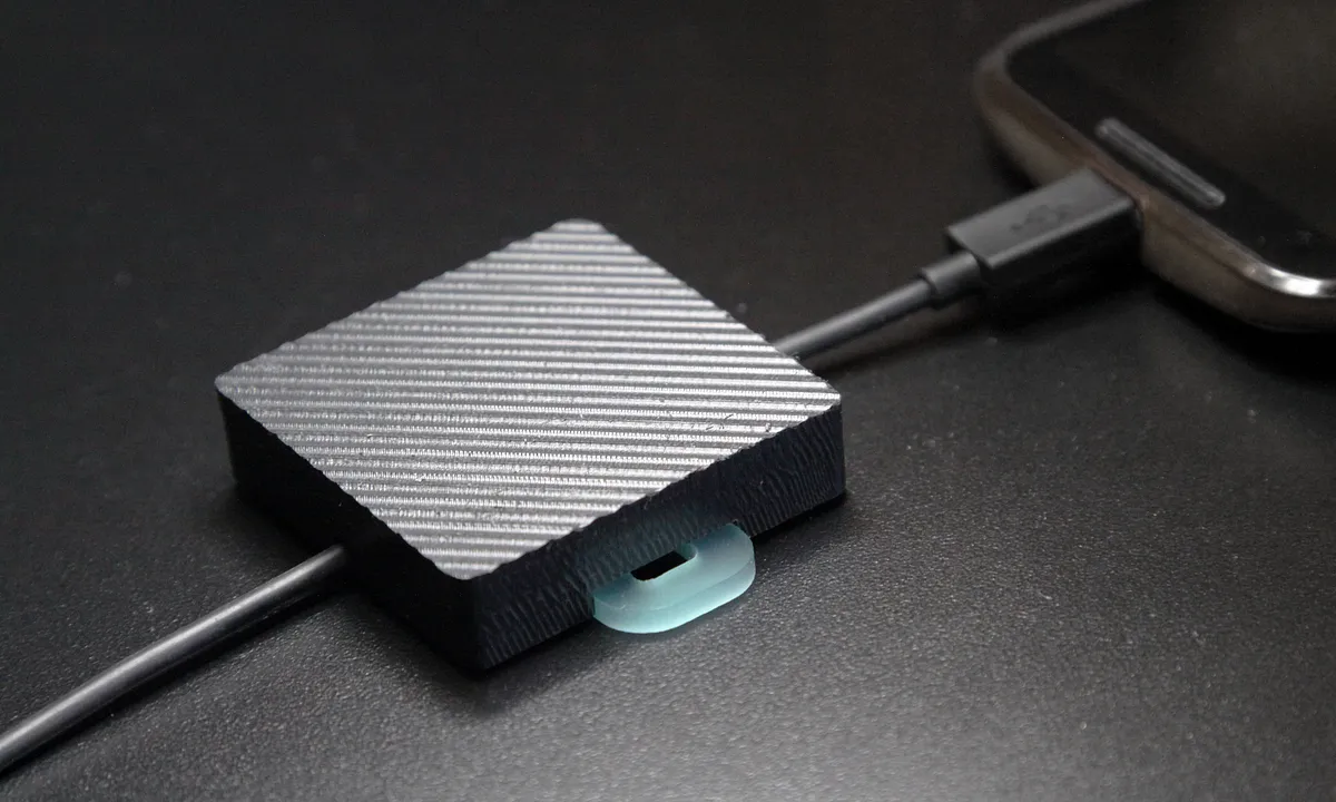 Cut the plate to trap the cable out of an acrylic material. Due to the small part size this is also a good time to use double sided tape.