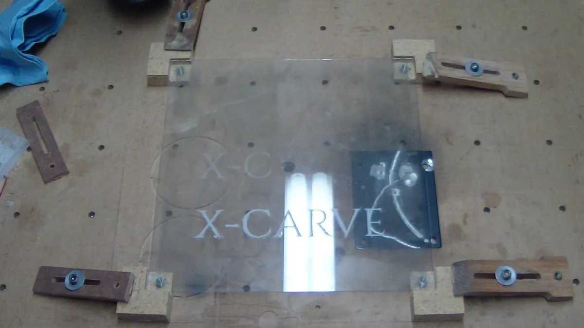 Been wanting to try some glass etching on the x-carve but was worried about too much down force on the glass so i designed these floating plate glass clamps and they seem to work pretty well