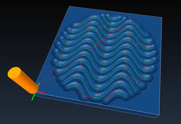 Export the G-code and visualize it on Camotics since the cutting tool is a 3/4" ball end mill. (Freud 18-112 3/4 in. Round Nose Router Bit)