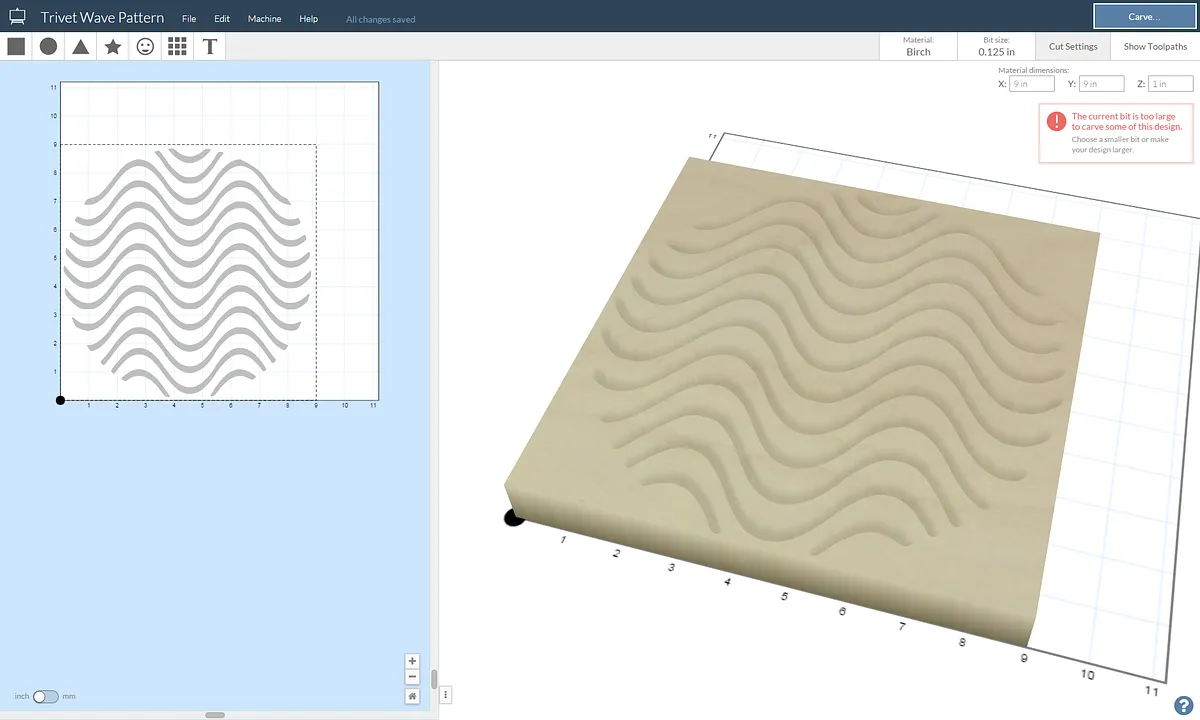 I left the tool setting at 1/8" bit.