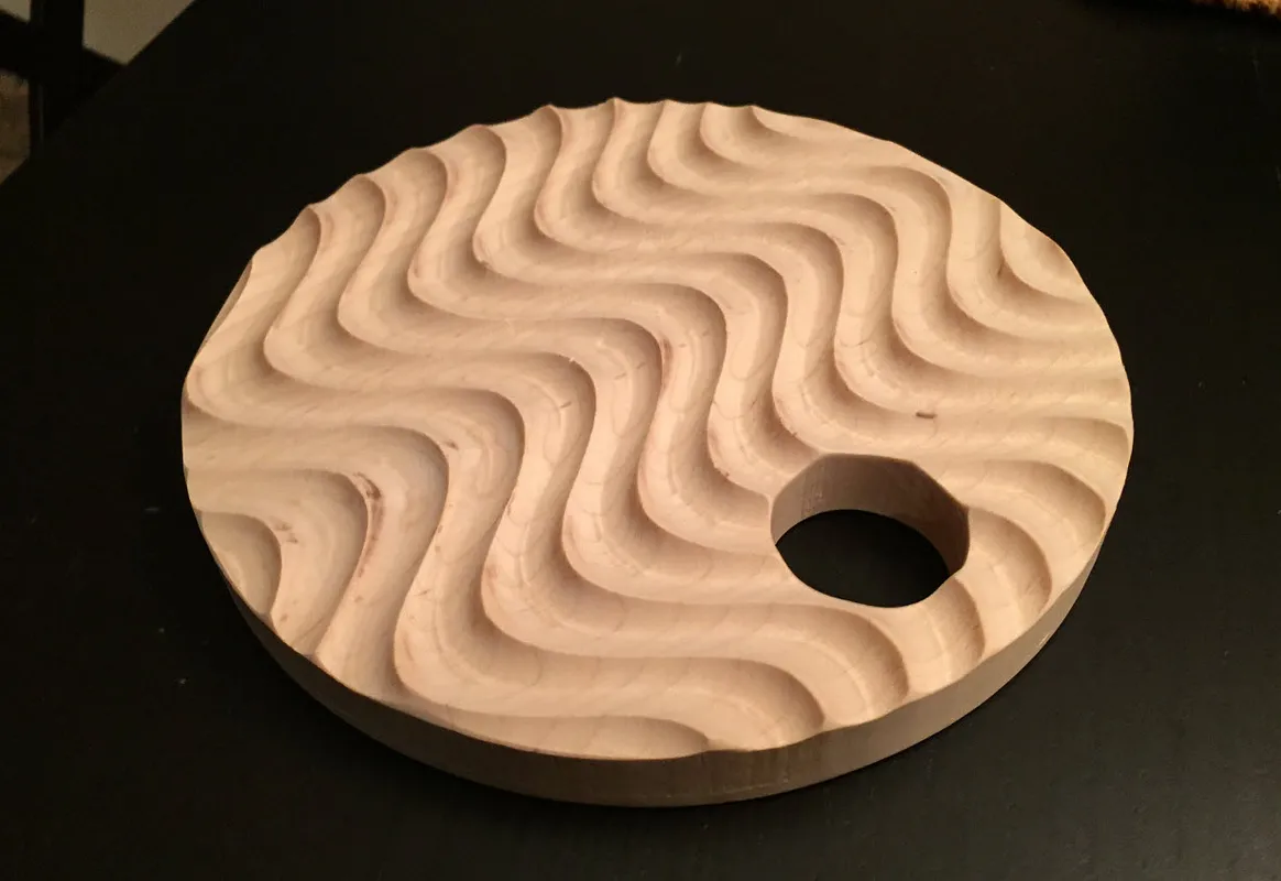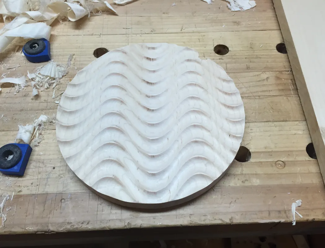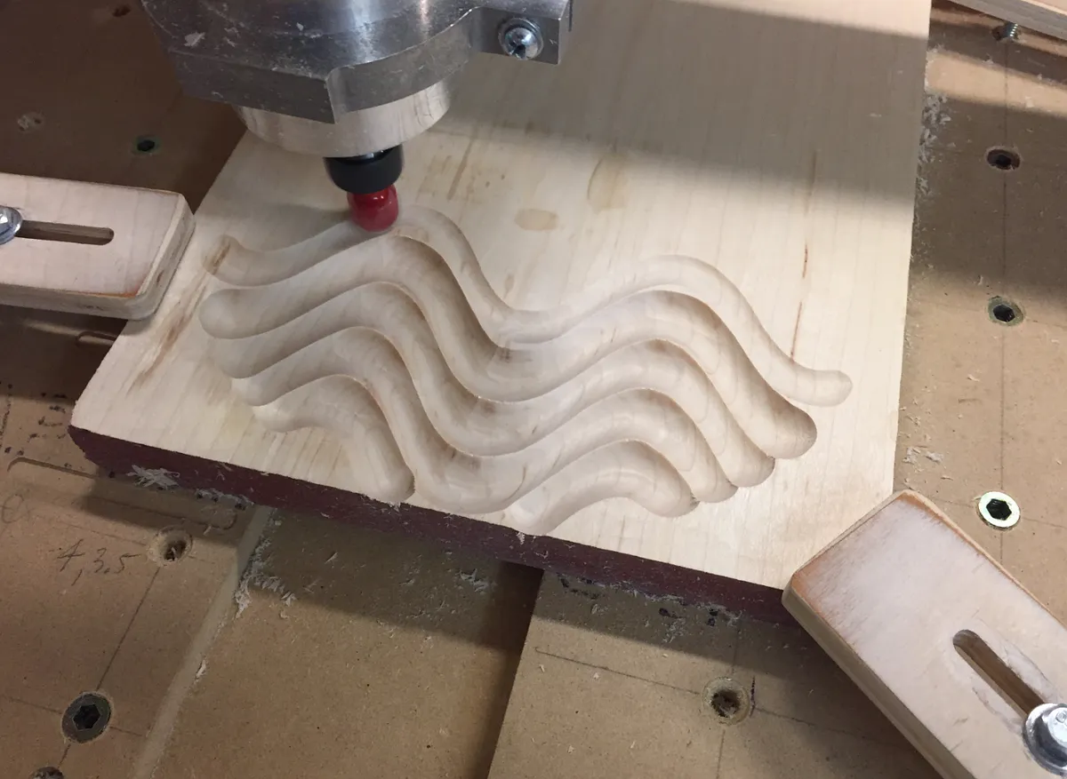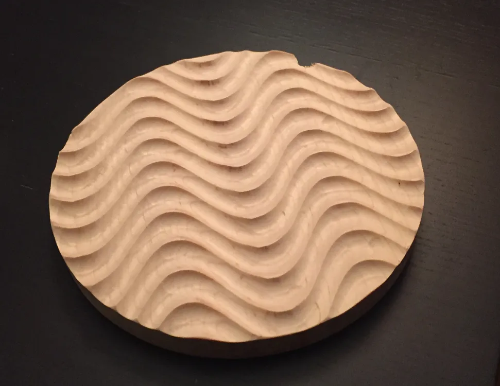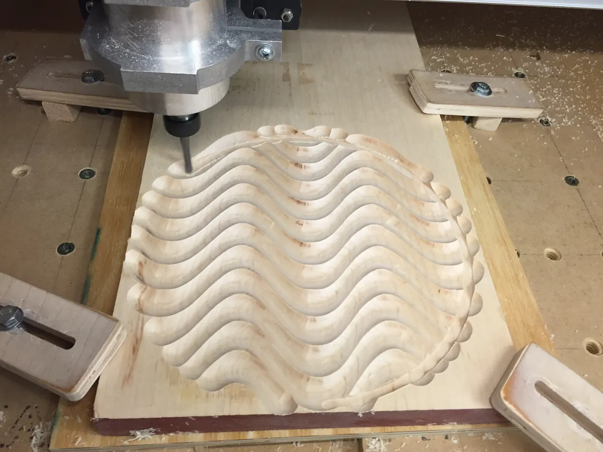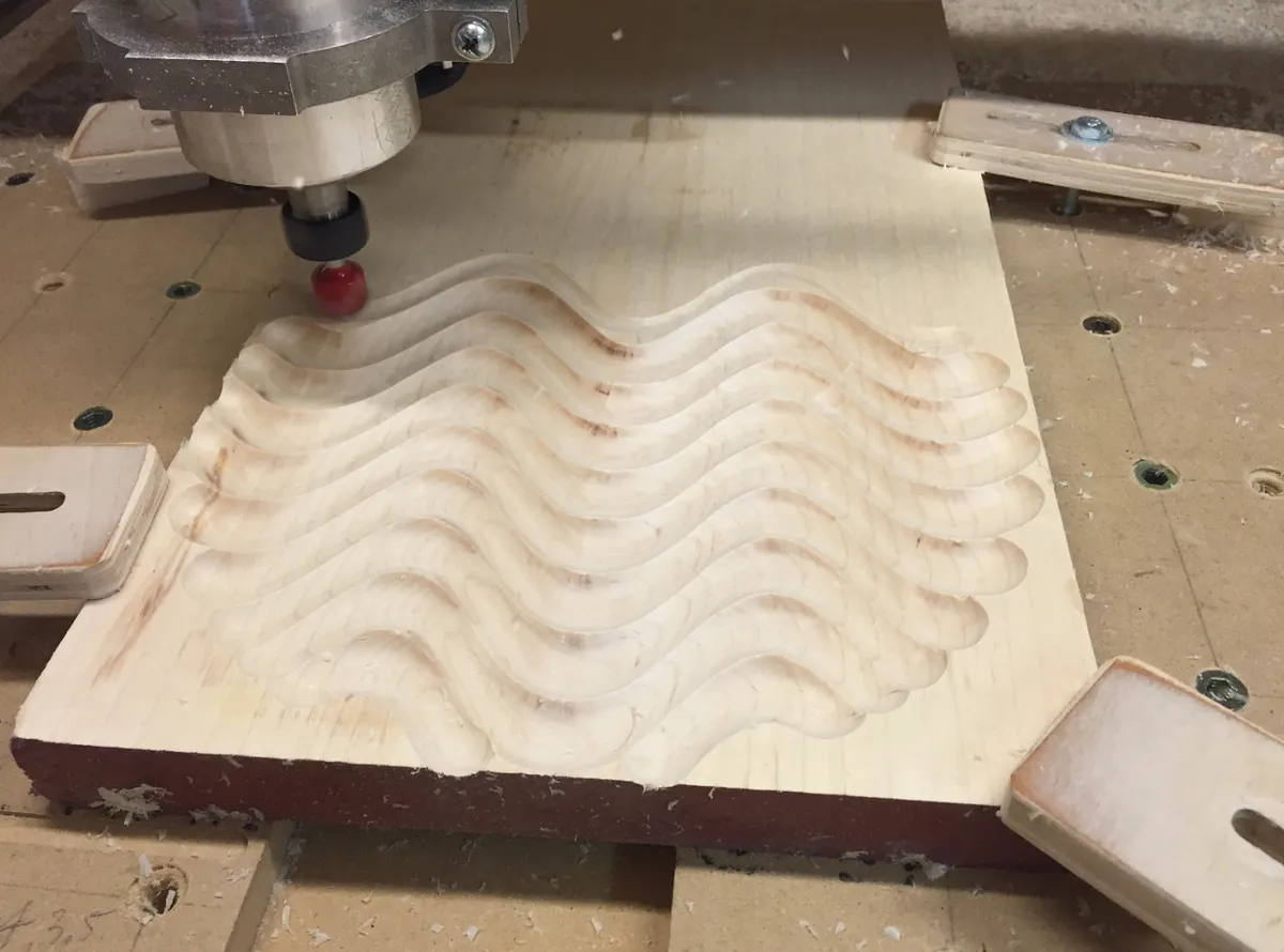 Chris, I used a 3/4" diameter round bit with a cut depth of 1/4". Since the milling pattern is an area, it creates that "wave" effect.
