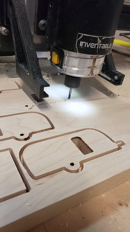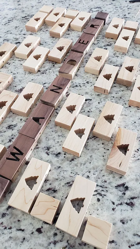 Cut out project using Easel Using a 1/4" drill bit, drill two holes per piece (equal spacing for each hole) through the sides of each cut out block Use 1/8 or 3/16 string and feed through drilled holes, tying a knot on the end of each string and a knot between each piece. Use a clear coat spray can to protect the wood Your done!