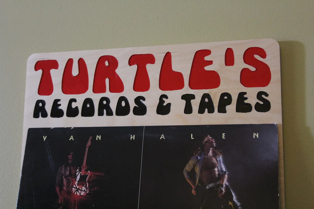 I imported the logo from my favorite 1980's record store that is now out of business. You can import a logo that means something to you, or make up a record store name. You could even use your last name...how about Carmichael Records & Tapes!