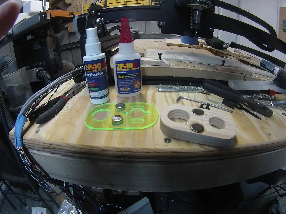 Next, you will want to get some power magnets. 9/16" x 3/16", sand the gluing surfaces, and glue them in the recessed holes. I used Power Mags from FastCap. http://www.fastcap.com/estore/pc/viewPrd.asp?idproduct=302