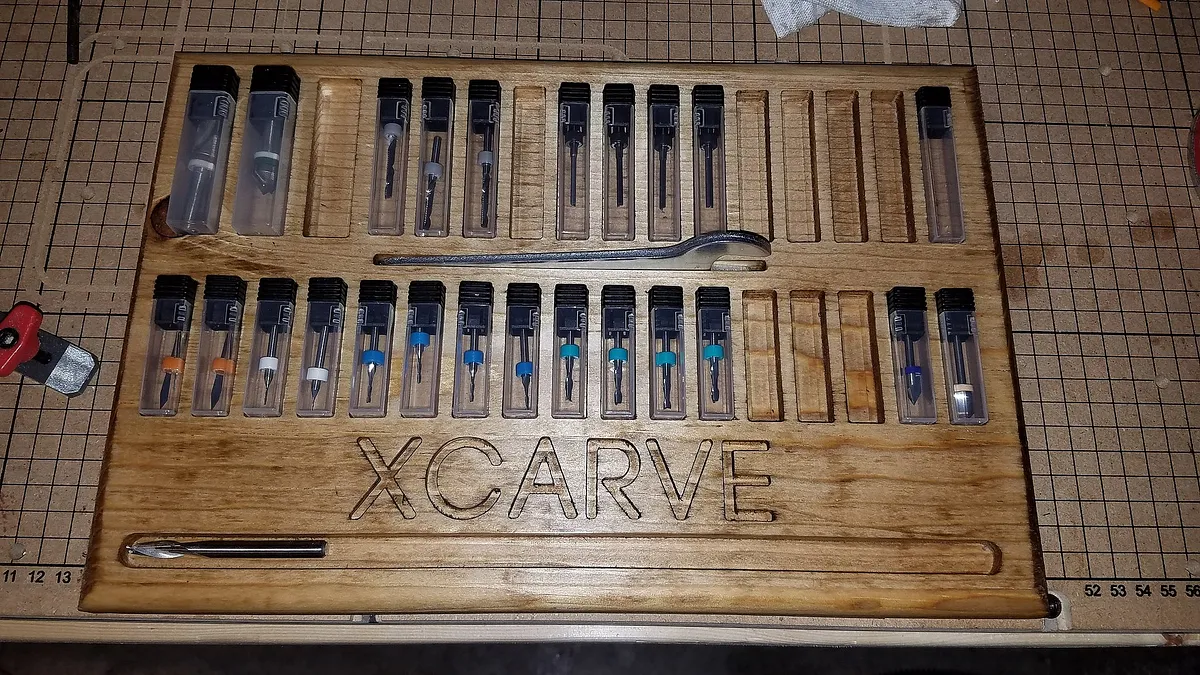 this looks great, I put labels on the sides of all my bits so I know what its size , now I can make something like this to hold them all. perhaps even create a small laptop type tray to put under the cnc waste board to pull open and close as needed. Love the ideas!!
