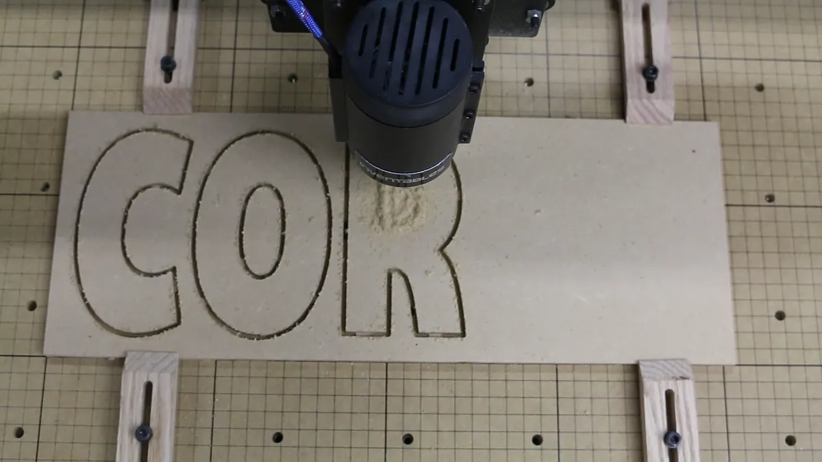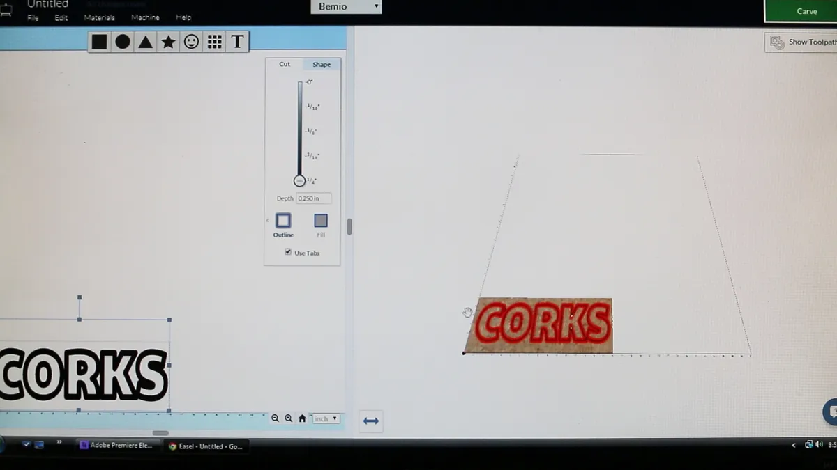 I used a Spiral Up Cut, Single Flute End Mill, 1/8" cutting dia. Loaded up CORKS and send it to the X-Carve.