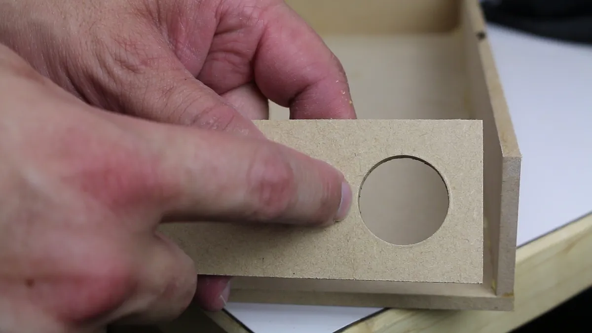 On one of the short 2" x 2.5" pieces, drill a 1-1/8" hole at the top.