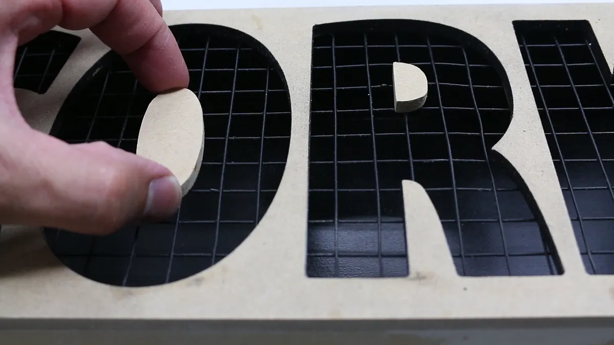 Using a jig saw, cut the tabs that are holding the letters in place. Sand remaining pieces of tab smooth. Make sure you keep the center of the "O" and "R". You will glue these on later.